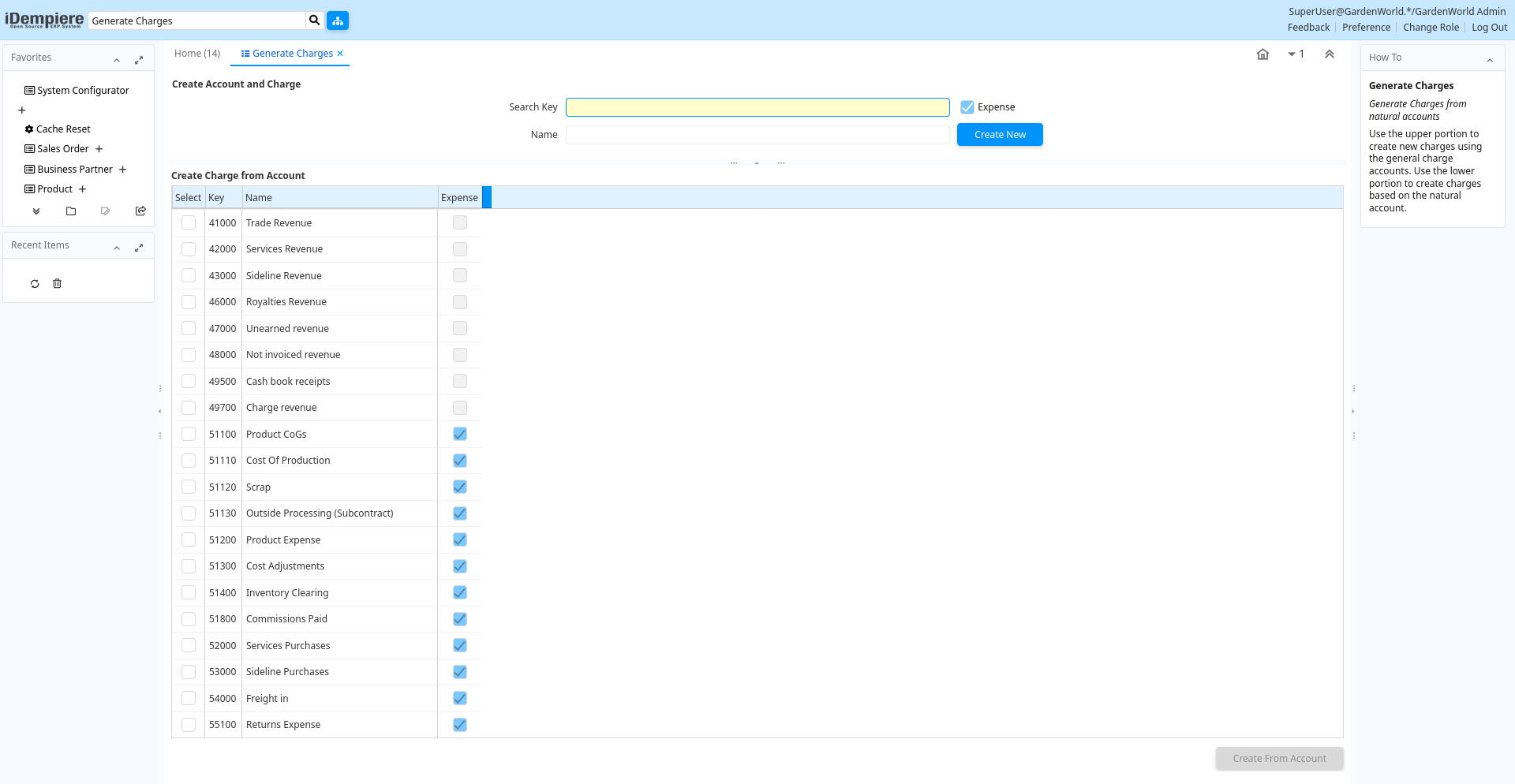 Description: Generate Charges from natural accounts
