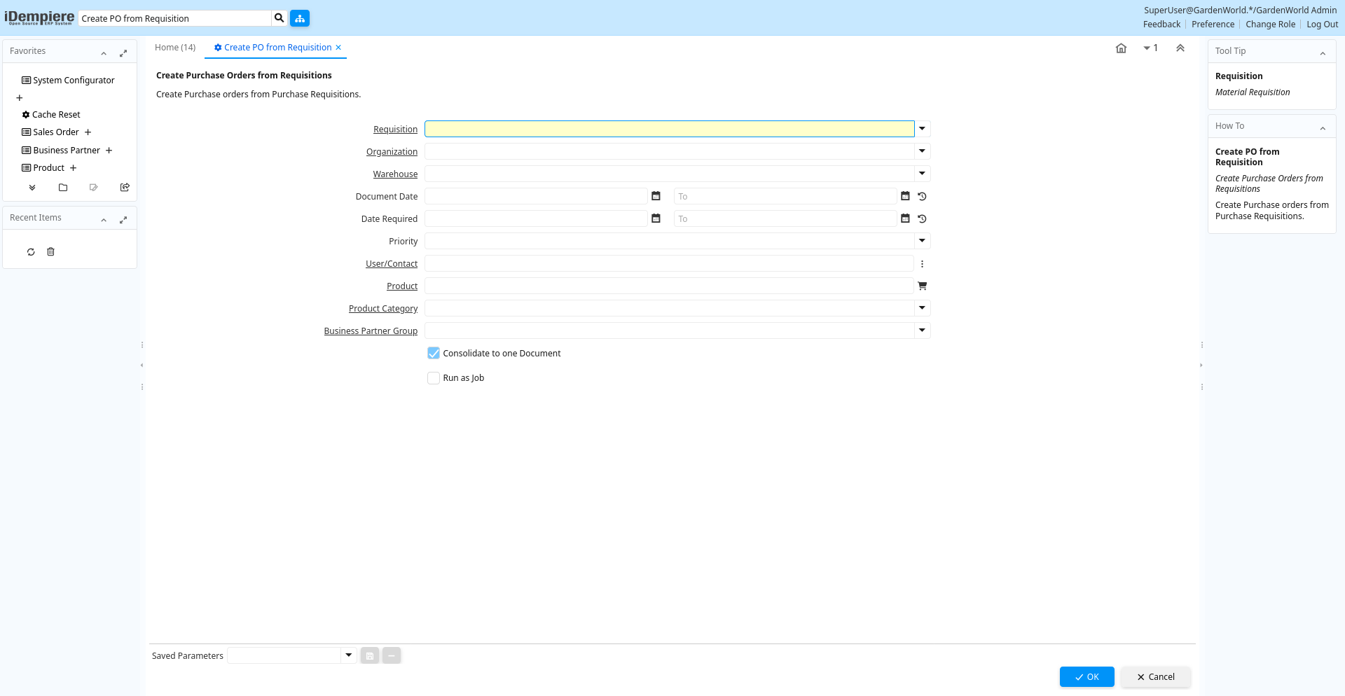 Process: Create PO from Requisition
