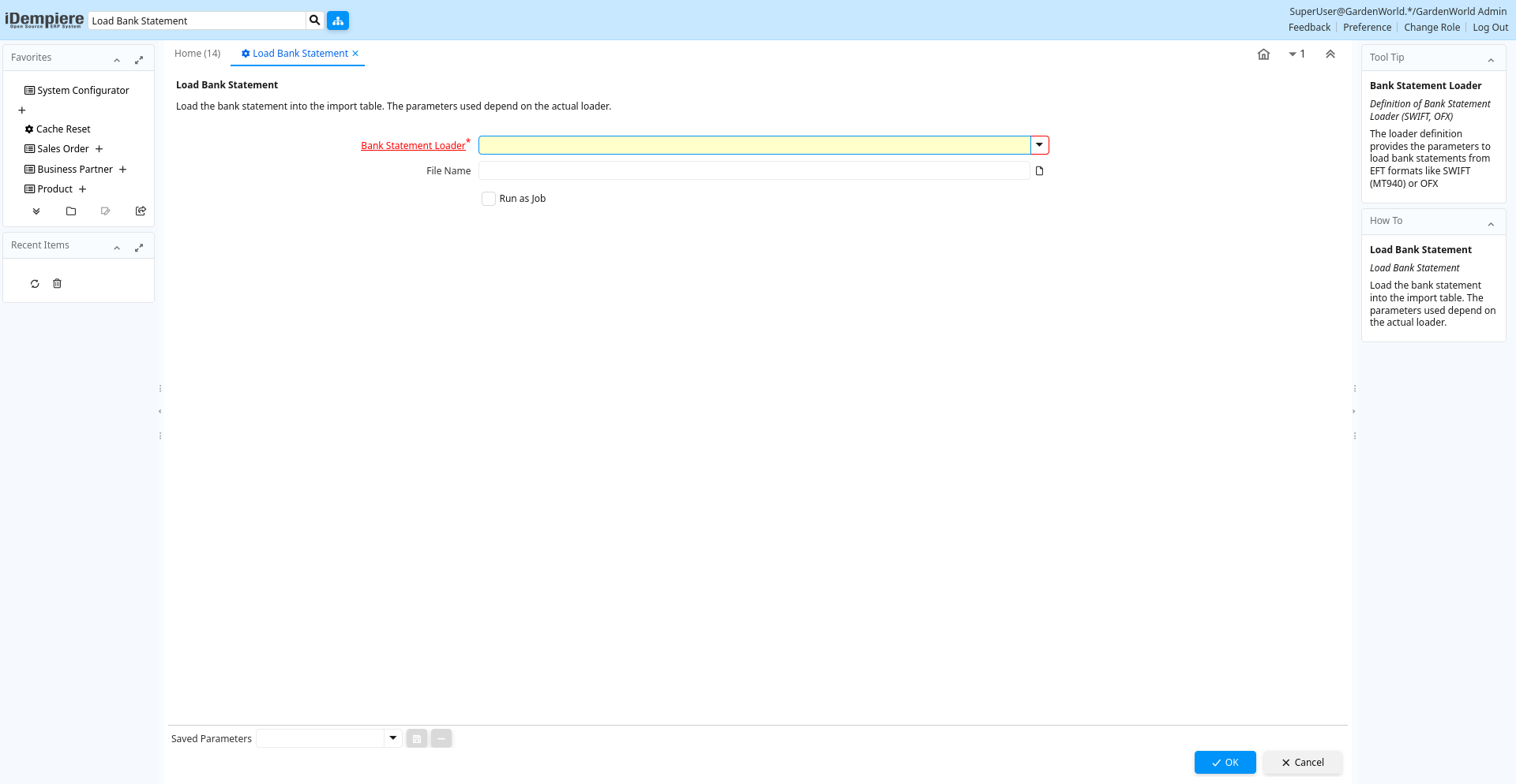 Help: Load the bank statement into the import table. The parameters used depend on the actual loader.