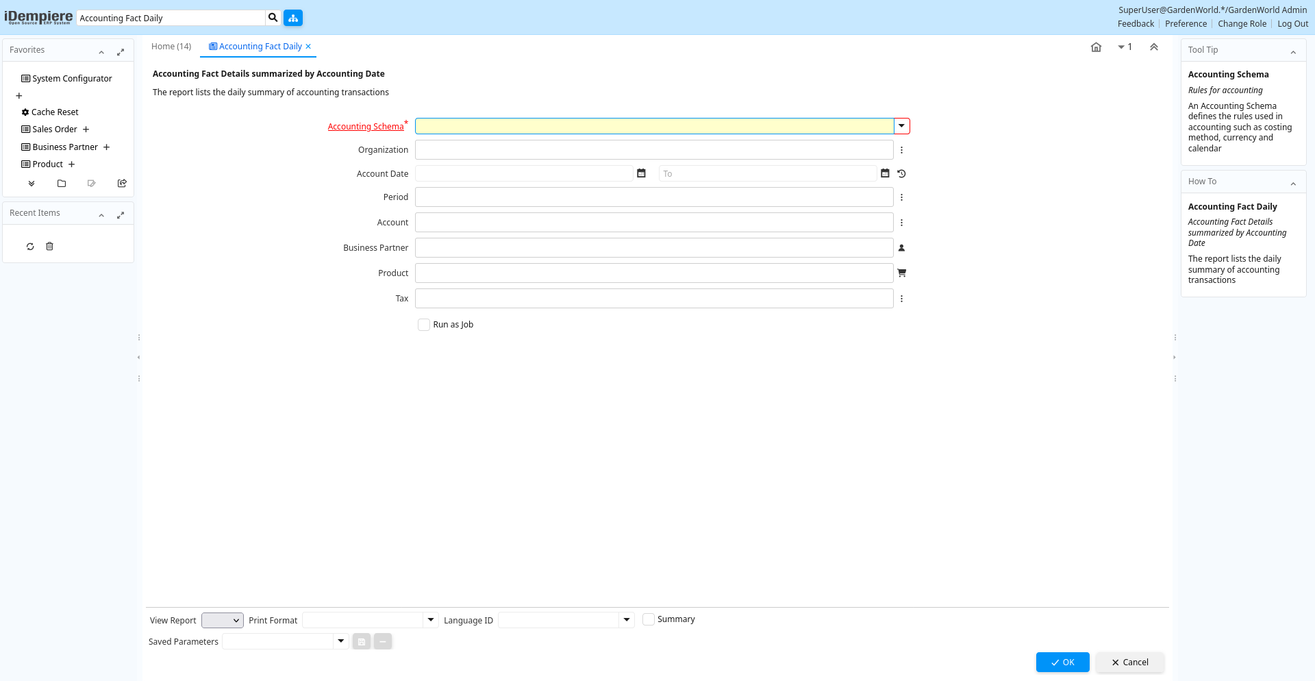 | Accounting Schema | Rules for accounting | An Accounting Schema defines the rules used in accounting such as costing method, currency and calendar | C_AcctSchema_ID Table Direct |
