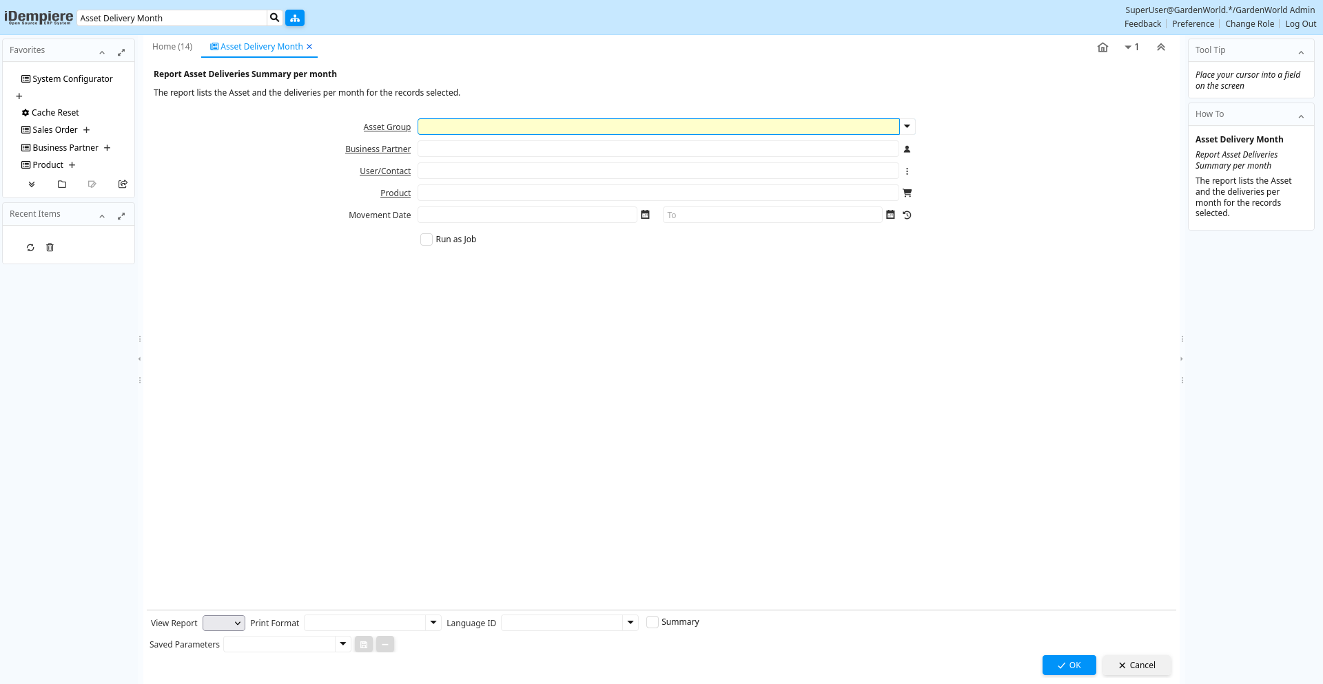 Help: The report lists the Asset and the deliveries per month for the records selected.
