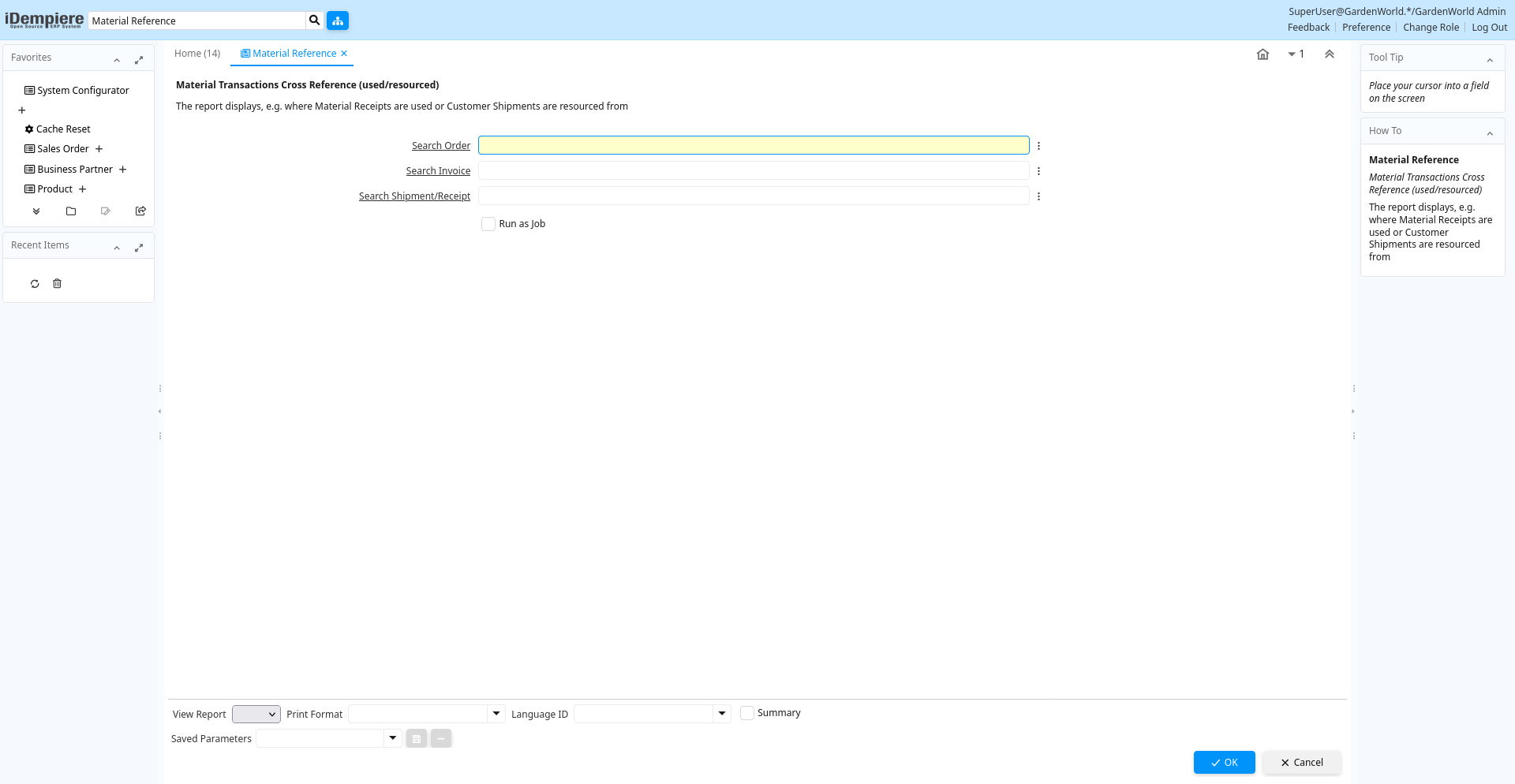 Help: The report displays, e.g. where Material Receipts are used or Customer Shipments are resourced from
