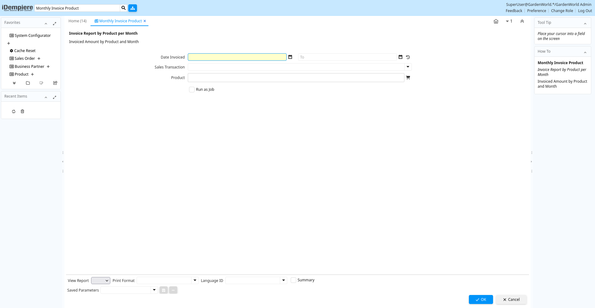 | Product | Product, Service, Item | Identifies an item which is either purchased or sold in this organization. | M_Product_ID Chosen Multiple Selection Search |