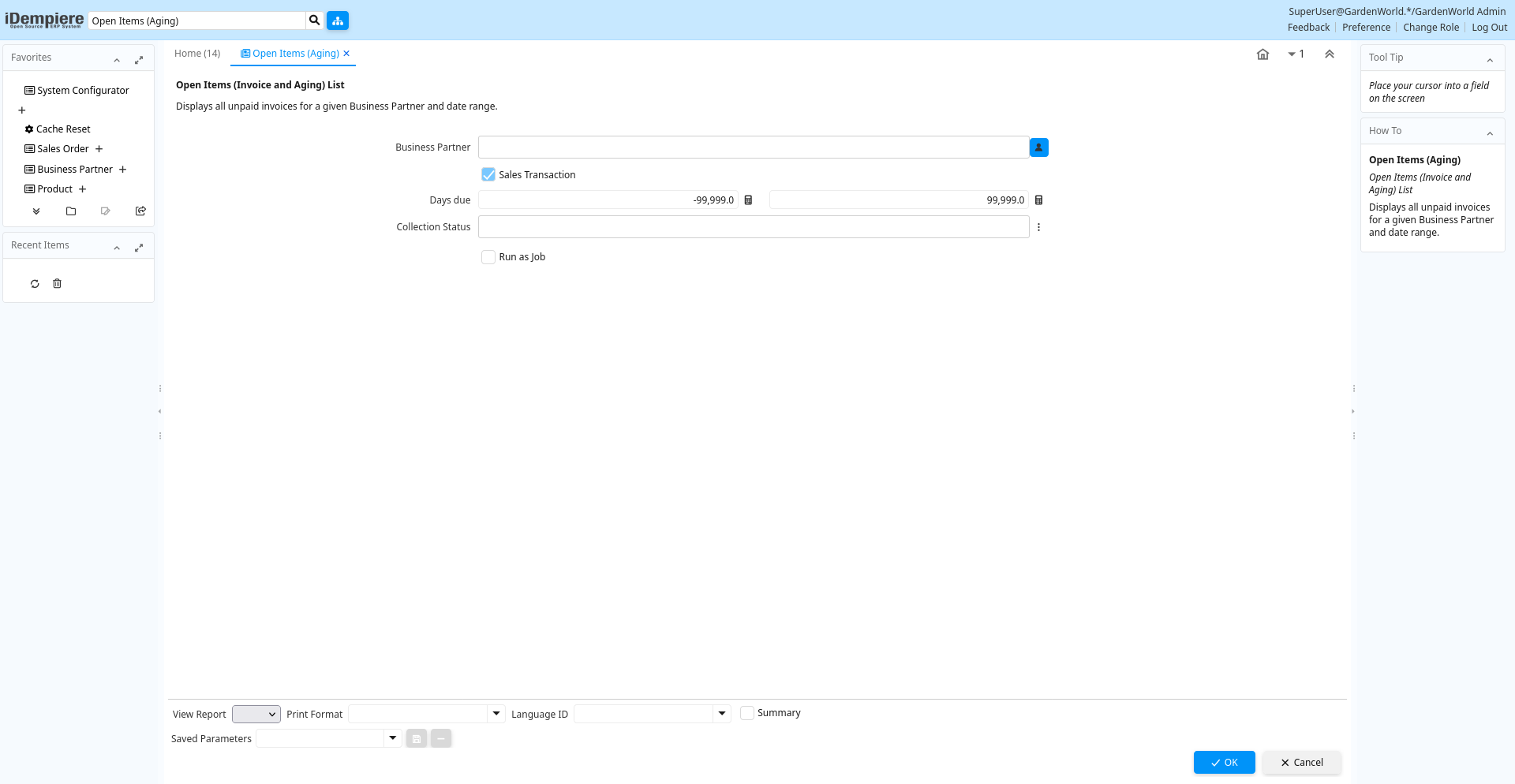 Help: Displays all unpaid invoices for a given Business Partner and date range.