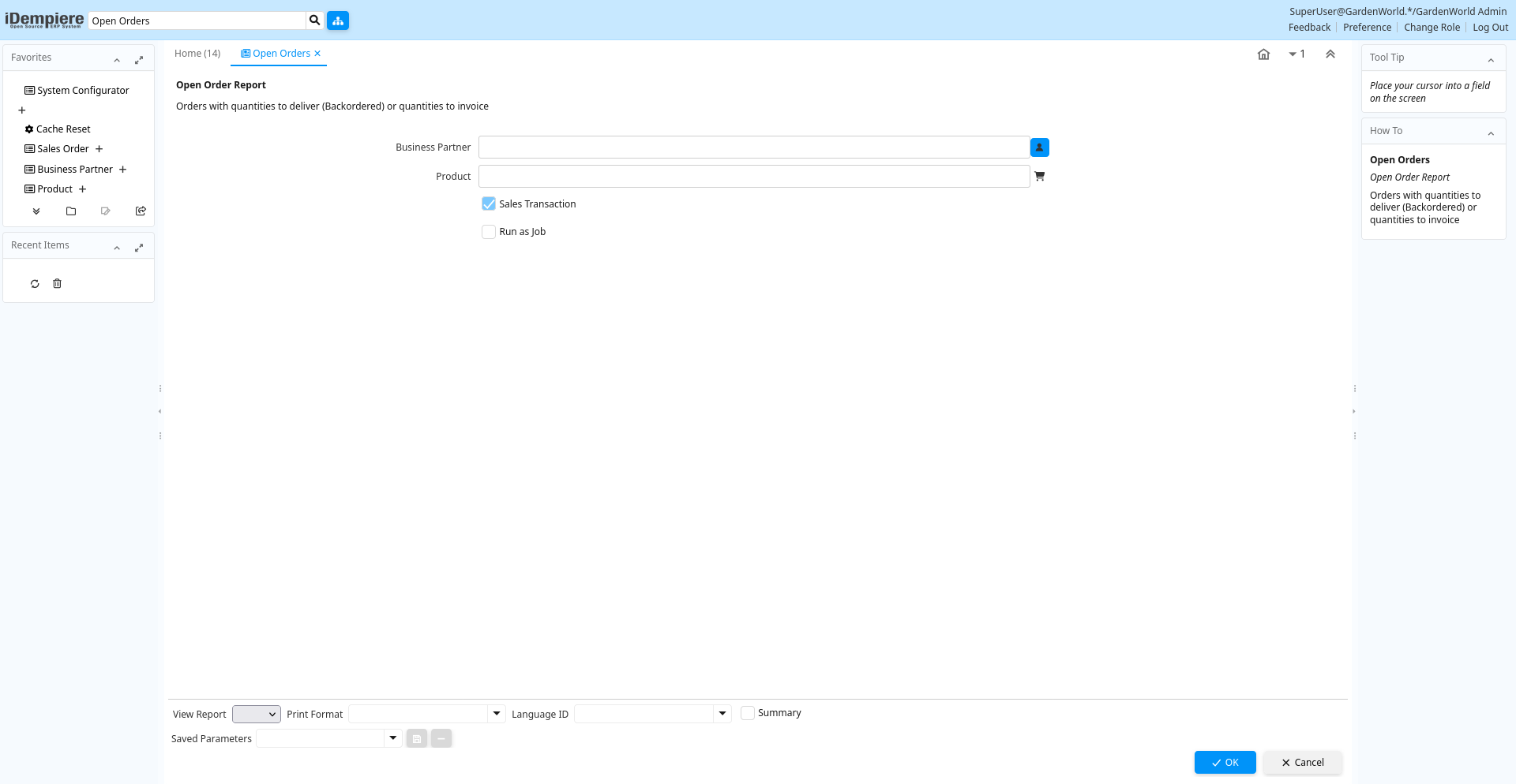 Description: Open Order Report