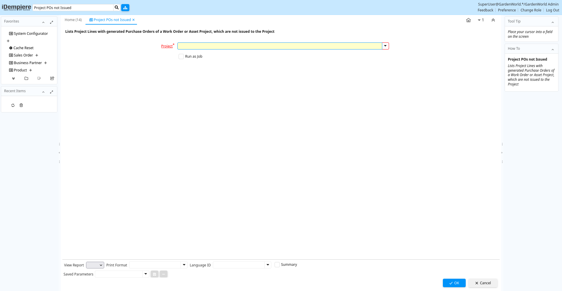 Report: Project POs not Issued