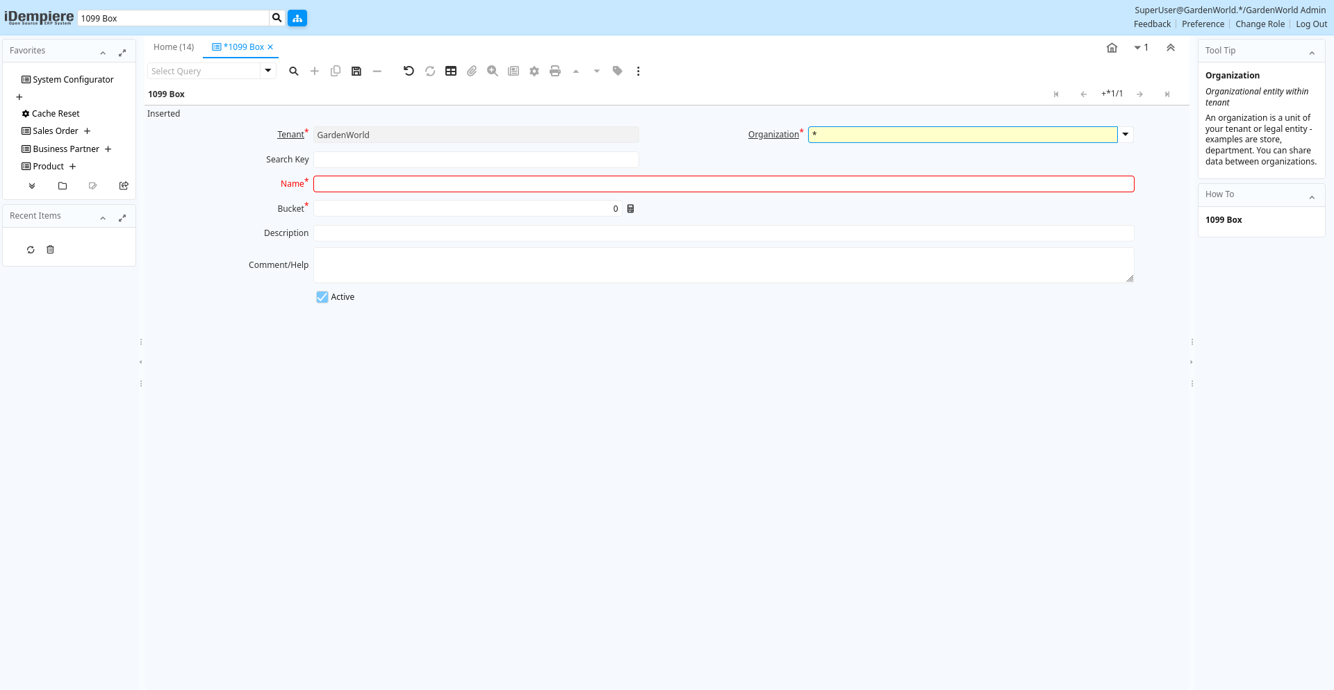 | Tenant | Tenant for this installation. | A Tenant is a company or a legal entity. You cannot share data between Tenants. | c_1099box.AD_Client_ID numeric(10) Table Direct |