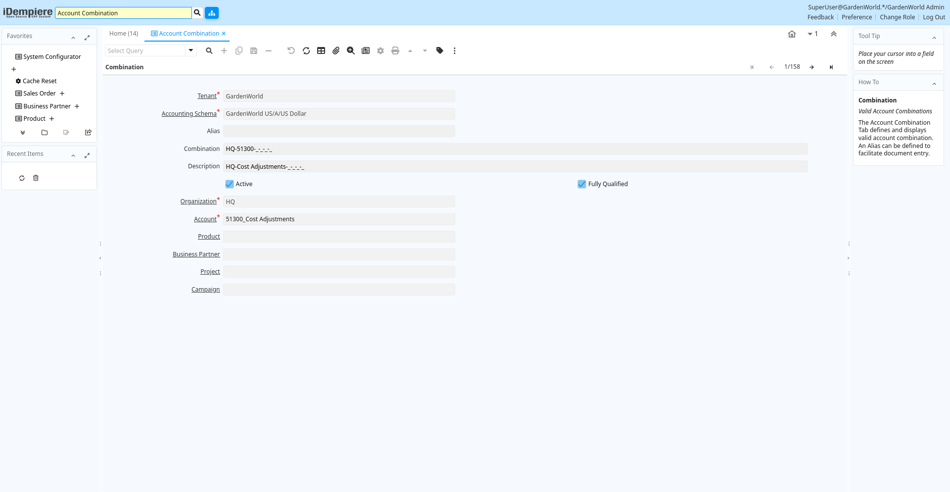 | Fully Qualified | This account is fully qualified | The Fully Qualified check box indicates that all required elements for an account combination are present. | c_validcombination.IsFullyQualified character(1) Yes-No |