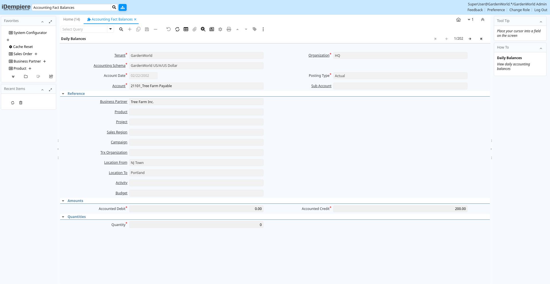 | Location To | Location that inventory was moved to | The Location To indicates the location that a product was moved to. | fact_acct_balance.C_LocTo_ID numeric(10) Table |