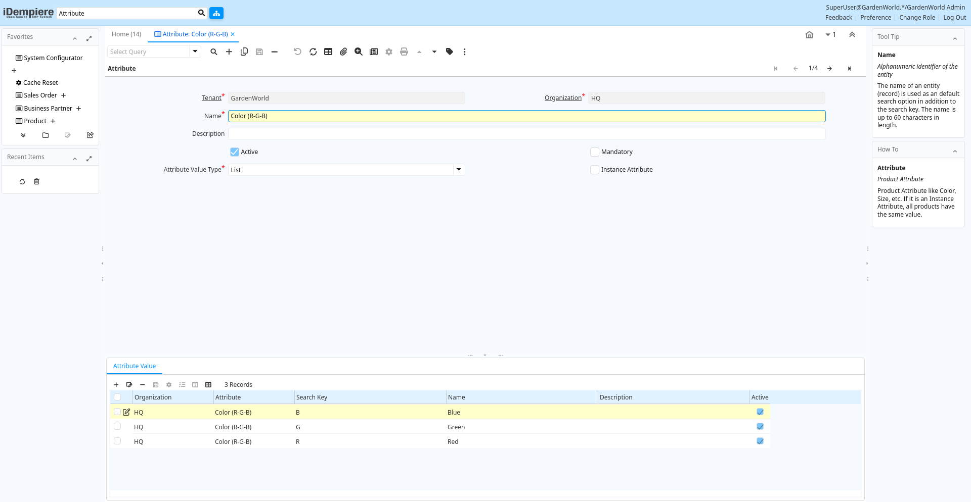| Active | The record is active in the system | There are two methods of making records unavailable in the system: One is to delete the record, the other is to de-activate the record. A de-activated record is not available for selection, but available for reports.There are two reasons for de-activating and not deleting records:(1) The system requires the record for audit purposes.(2) The record is referenced by other records. E.g., you cannot delete a Business Partner, if there are invoices for this partner record existing. You de-activate the Business Partner and prevent that this record is used for future entries. | m_attributevalue.IsActive character(1) Yes-No |
