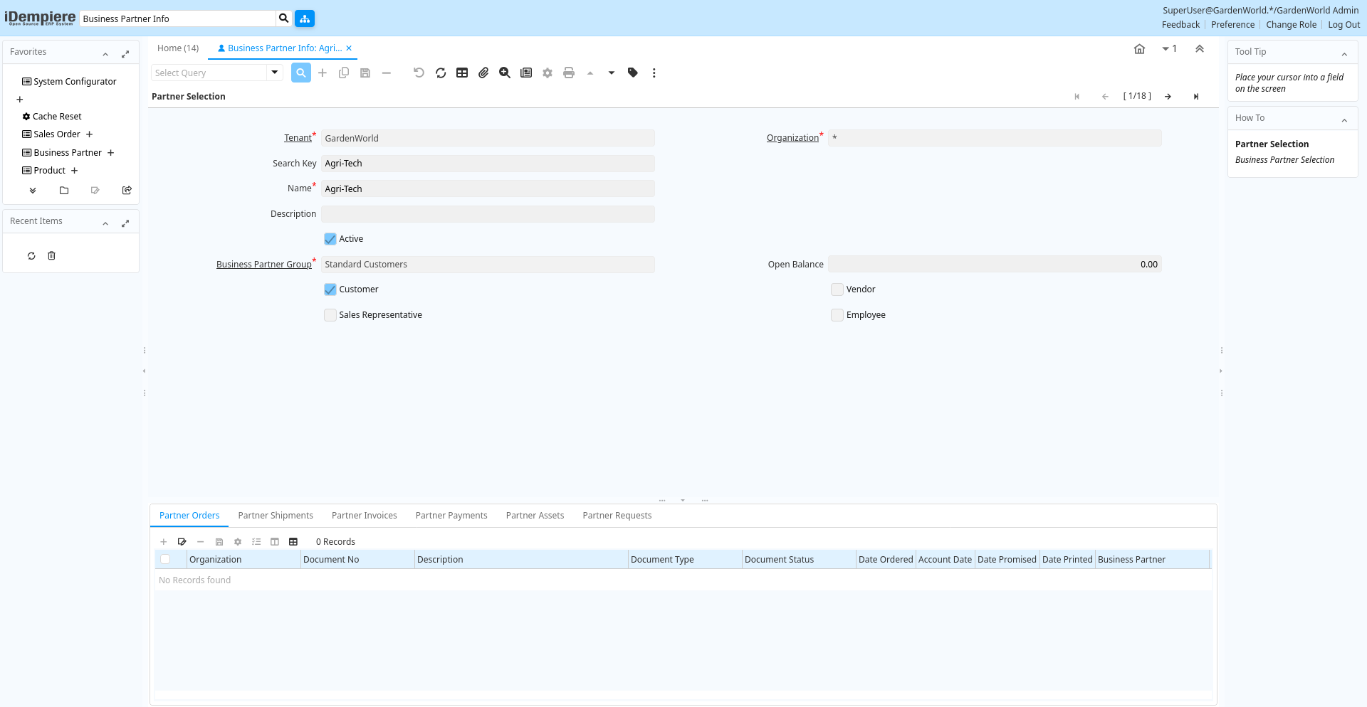 | Search Key | Search key for the record in the format required - must be unique | A search key allows you a fast method of finding a particular record.If you leave the search key empty, the system automatically creates a numeric number. The document sequence used for this fallback number is defined in the "Maintain Sequence" window with the name "DocumentNo_", where TableName is the actual name of the table (e.g. C_Order). | c_bpartner.Value character varying(40) String |