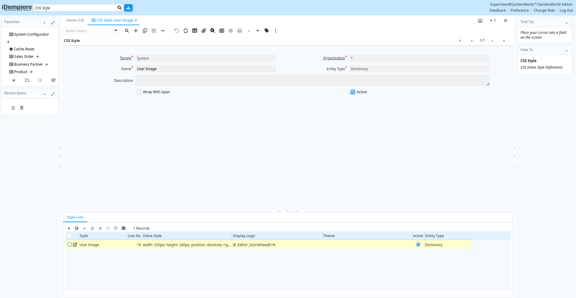 | Tenant | Tenant for this installation. | A Tenant is a company or a legal entity. You cannot share data between Tenants. | ad_style.AD_Client_ID numeric(10) Table Direct |