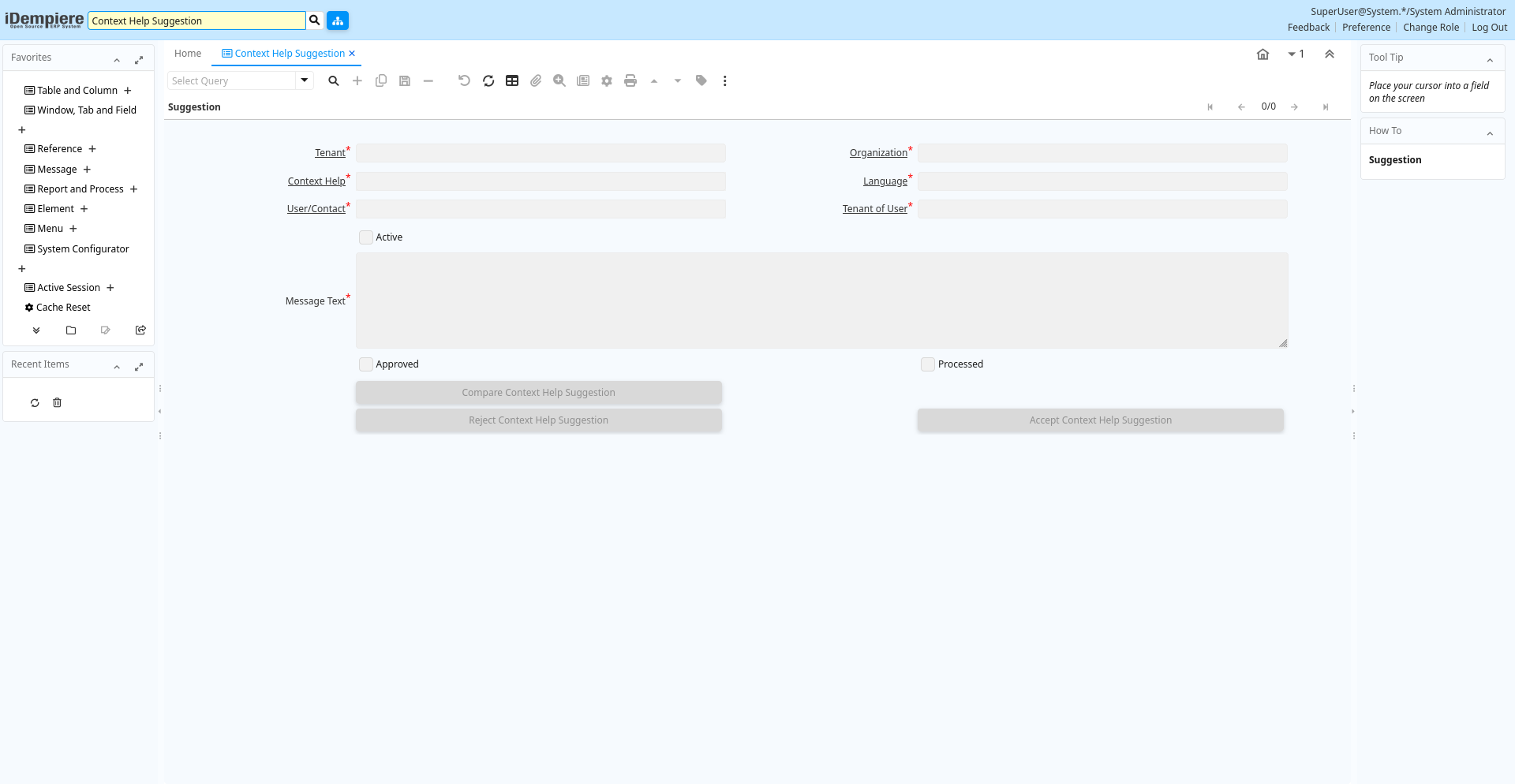 | Reject Context Help Suggestion | Reject suggested changes for context help | ad_ctxhelpsuggestion.RejectSuggestion character(1) Button | |