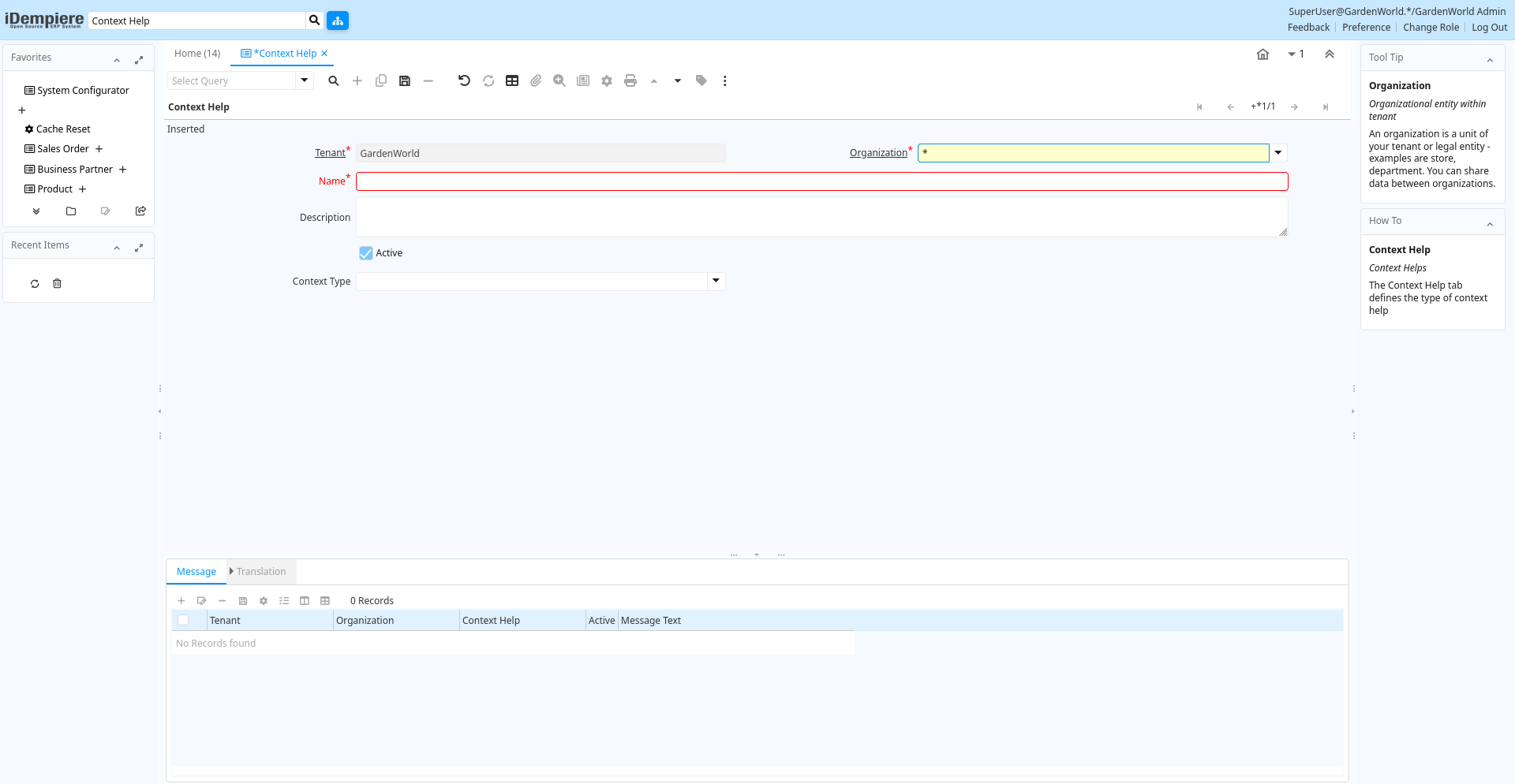| Tenant | Tenant for this installation. | A Tenant is a company or a legal entity. You cannot share data between Tenants. | ad_ctxhelpmsg_trl.AD_Client_ID numeric(10) Table Direct |