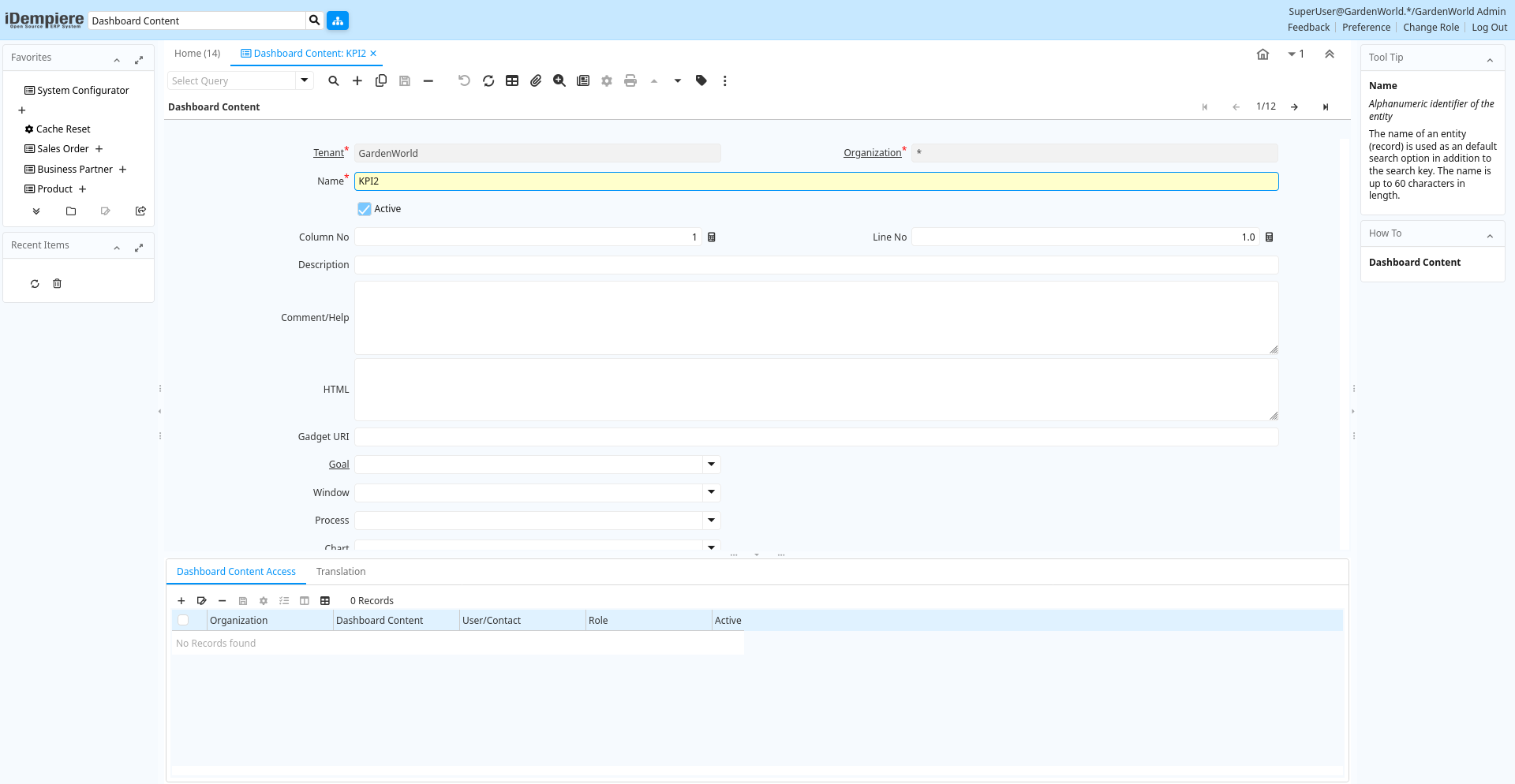 | Comment/Help | Comment or Hint | The Help field contains a hint, comment or help about the use of this item. | pa_dashboardcontent_trl.Help character varying(2000) Text |