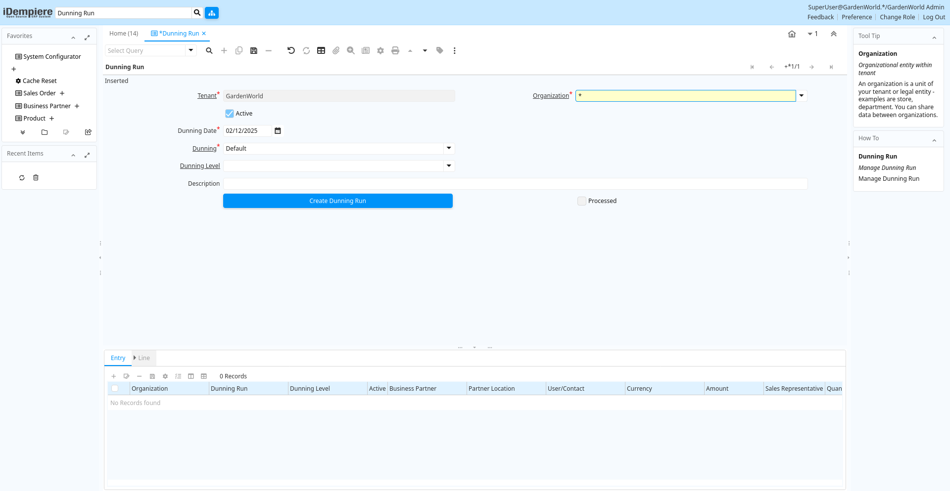 | Tenant | Tenant for this installation. | A Tenant is a company or a legal entity. You cannot share data between Tenants. | c_dunningrun.AD_Client_ID numeric(10) Table Direct |