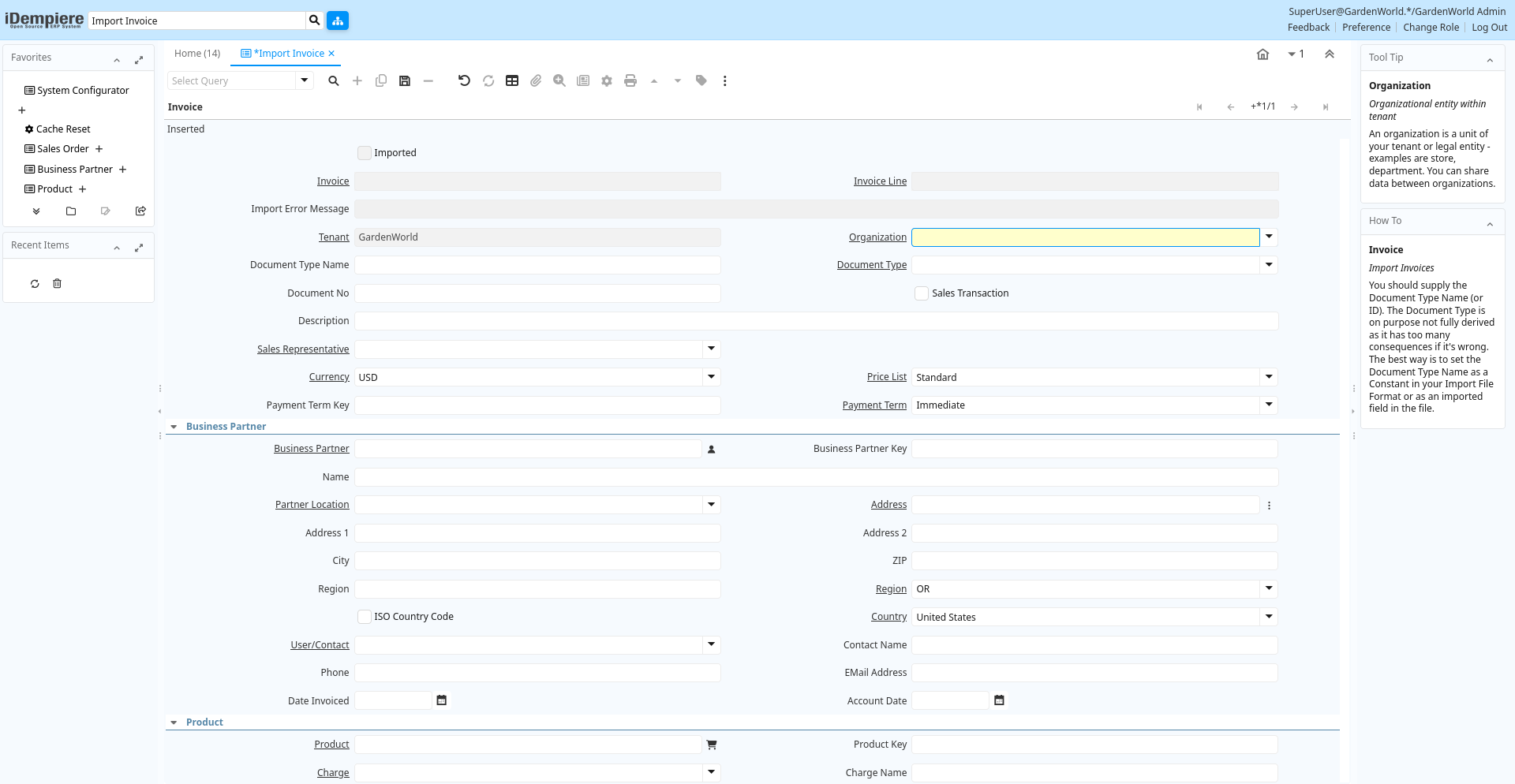 | Organization | Organizational entity within tenant | An organization is a unit of your tenant or legal entity - examples are store, department. You can share data between organizations. | i_invoice.AD_Org_ID numeric(10) Table Direct |