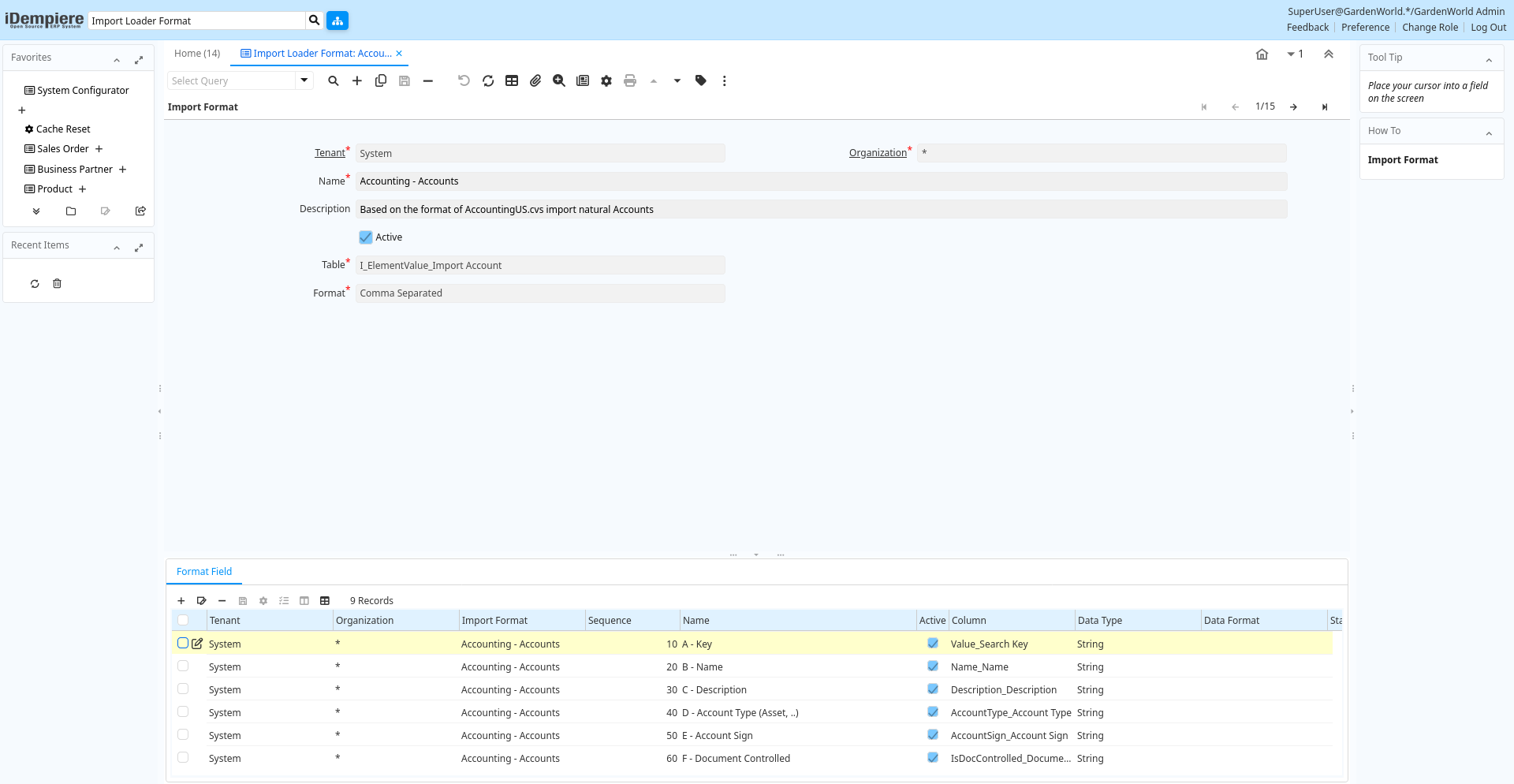 | Separator Character | ad_impformat.SeparatorChar character varying(1) String | ||