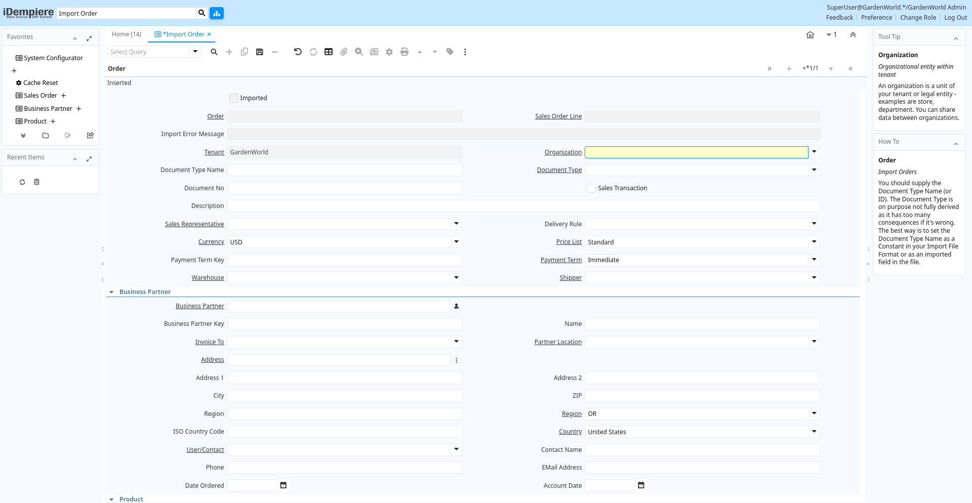 | Organization | Organizational entity within tenant | An organization is a unit of your tenant or legal entity - examples are store, department. You can share data between organizations. | i_order.AD_Org_ID numeric(10) Table Direct |