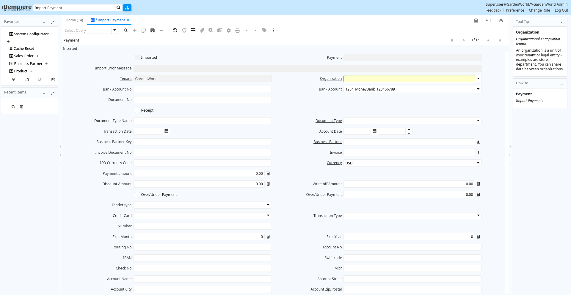 | Organization | Organizational entity within tenant | An organization is a unit of your tenant or legal entity - examples are store, department. You can share data between organizations. | i_payment.AD_Org_ID numeric(10) Table Direct |