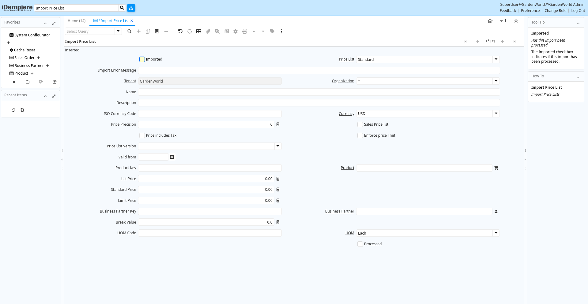 | Imported | Has this import been processed | The Imported check box indicates if this import has been processed. | i_pricelist.I_IsImported character(1) Yes-No |
