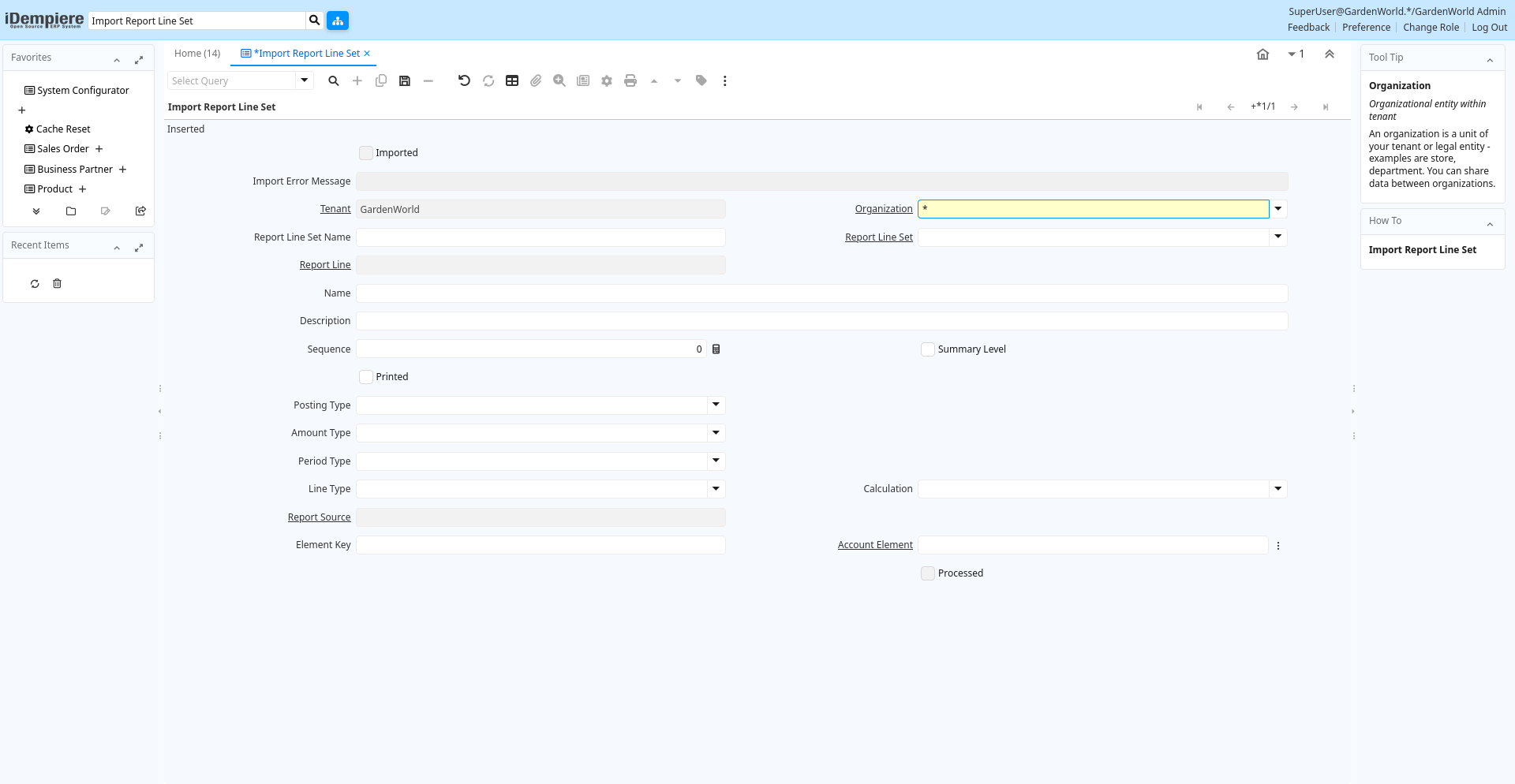 | Organization | Organizational entity within tenant | An organization is a unit of your tenant or legal entity - examples are store, department. You can share data between organizations. | i_reportline.AD_Org_ID numeric(10) Table Direct |