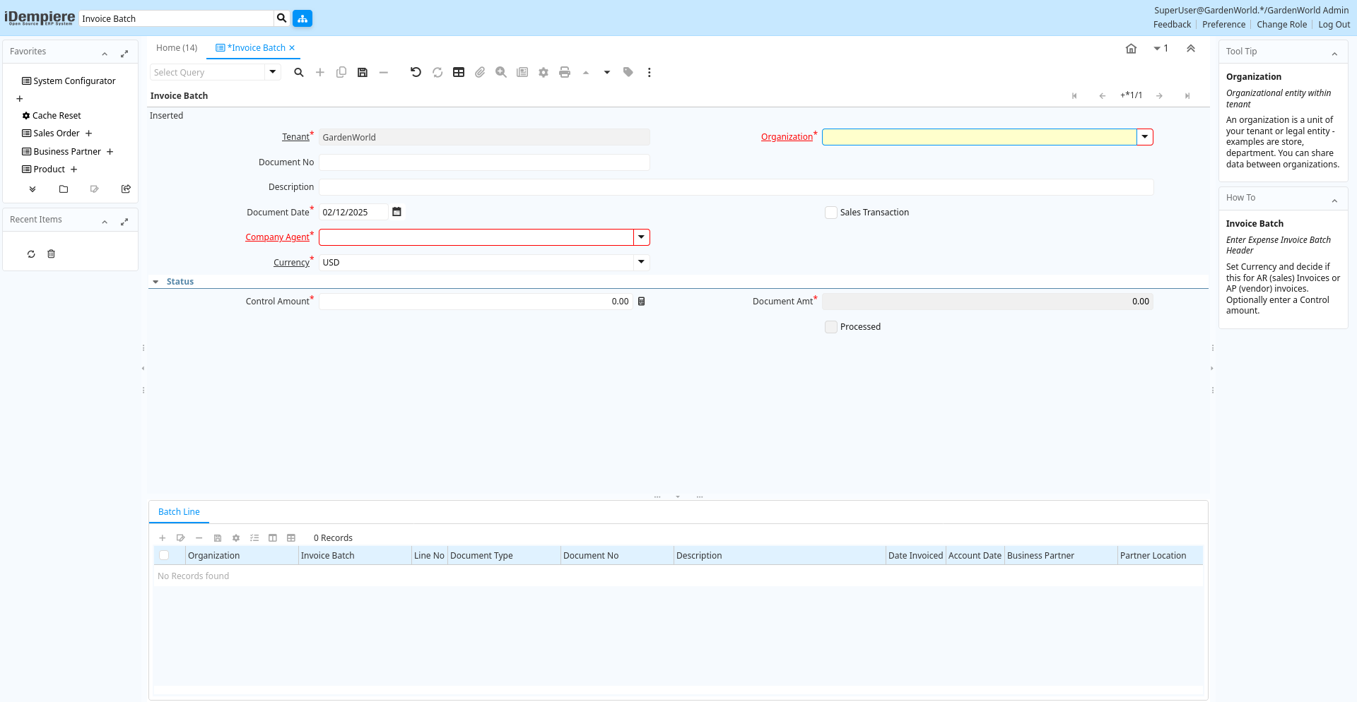 | Tenant | Tenant for this installation. | A Tenant is a company or a legal entity. You cannot share data between Tenants. | c_invoicebatch.AD_Client_ID numeric(10) Table Direct |