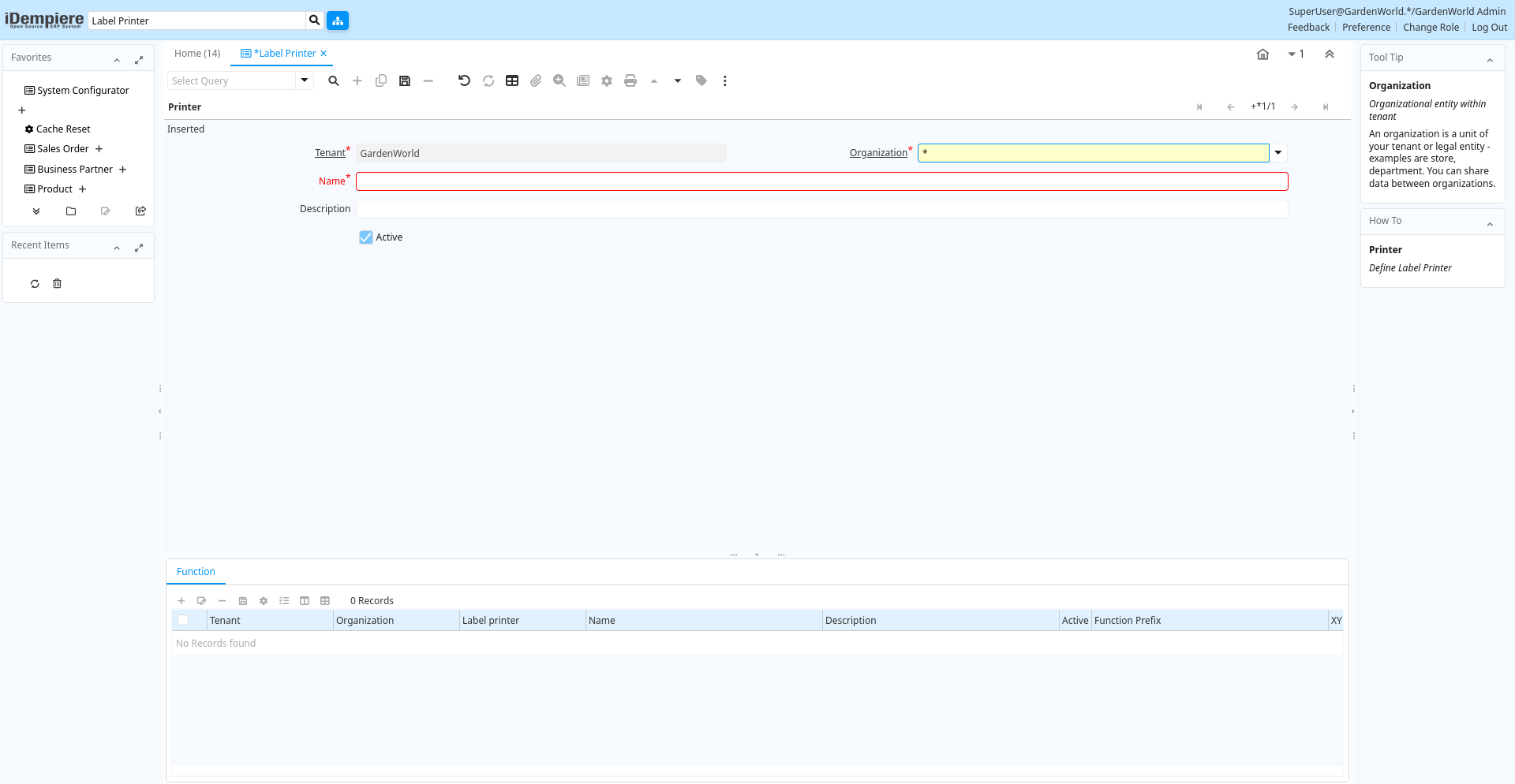 | Tenant | Tenant for this installation. | A Tenant is a company or a legal entity. You cannot share data between Tenants. | ad_labelprinterfunction.AD_Client_ID numeric(10) Table Direct |