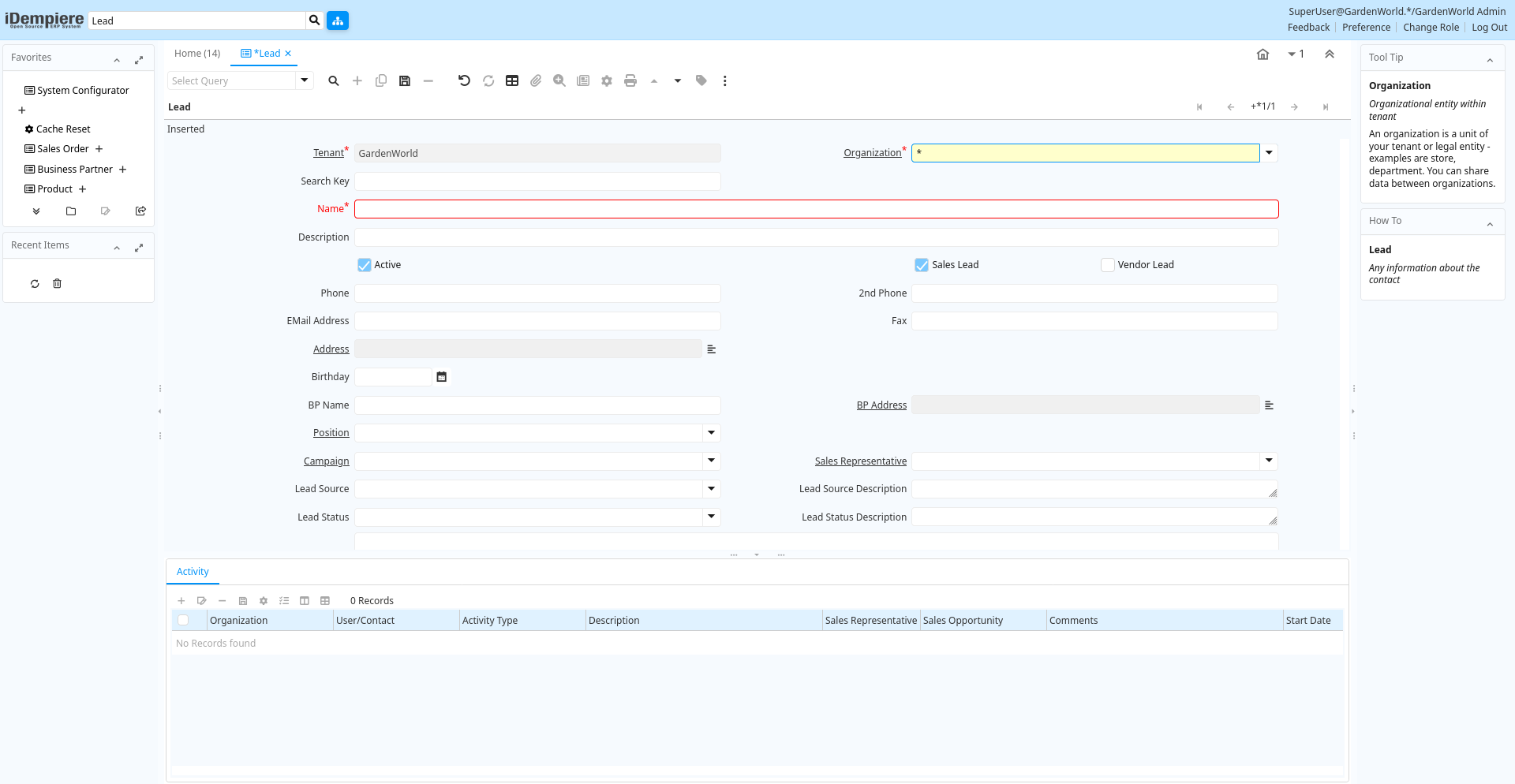 | Sales Lead | This contact is a sales lead | Sales leads can be converted into full contacts with Business Partners. | ad_user.IsSalesLead character(1) Yes-No |