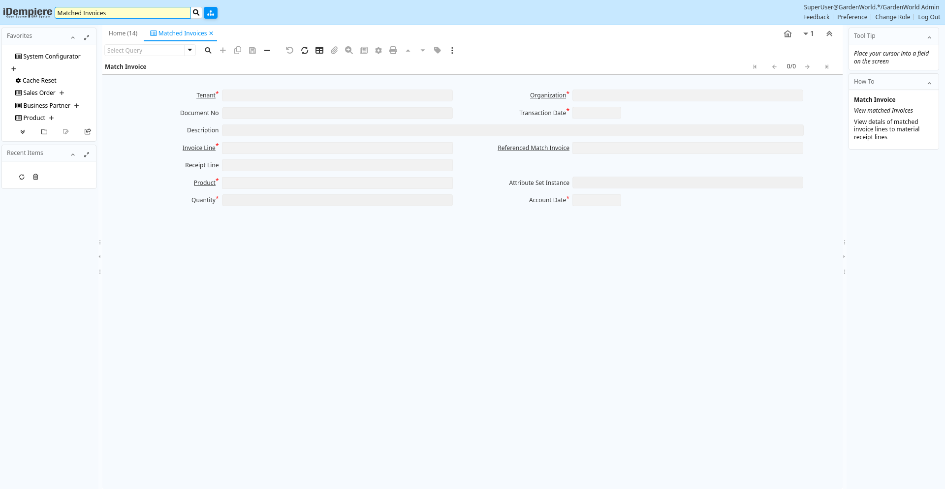 Description: View matched Invoices