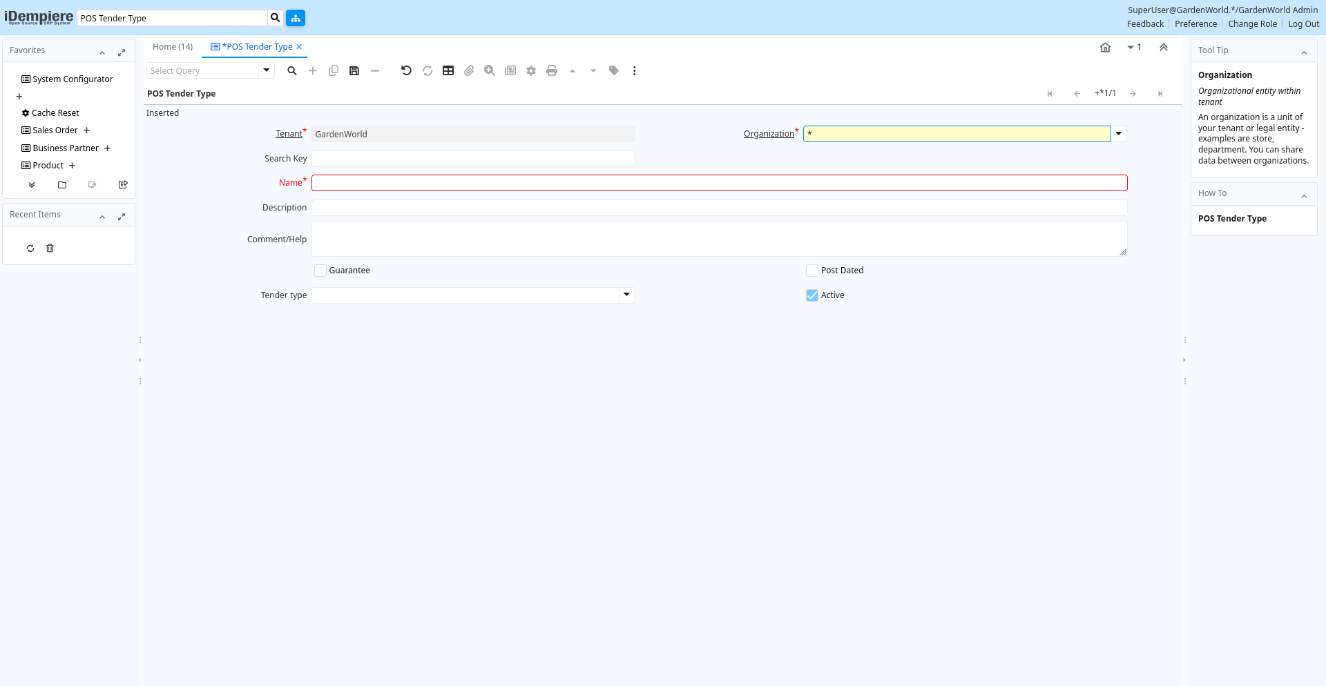 | Tenant | Tenant for this installation. | A Tenant is a company or a legal entity. You cannot share data between Tenants. | c_postendertype.AD_Client_ID numeric(10) Table Direct |