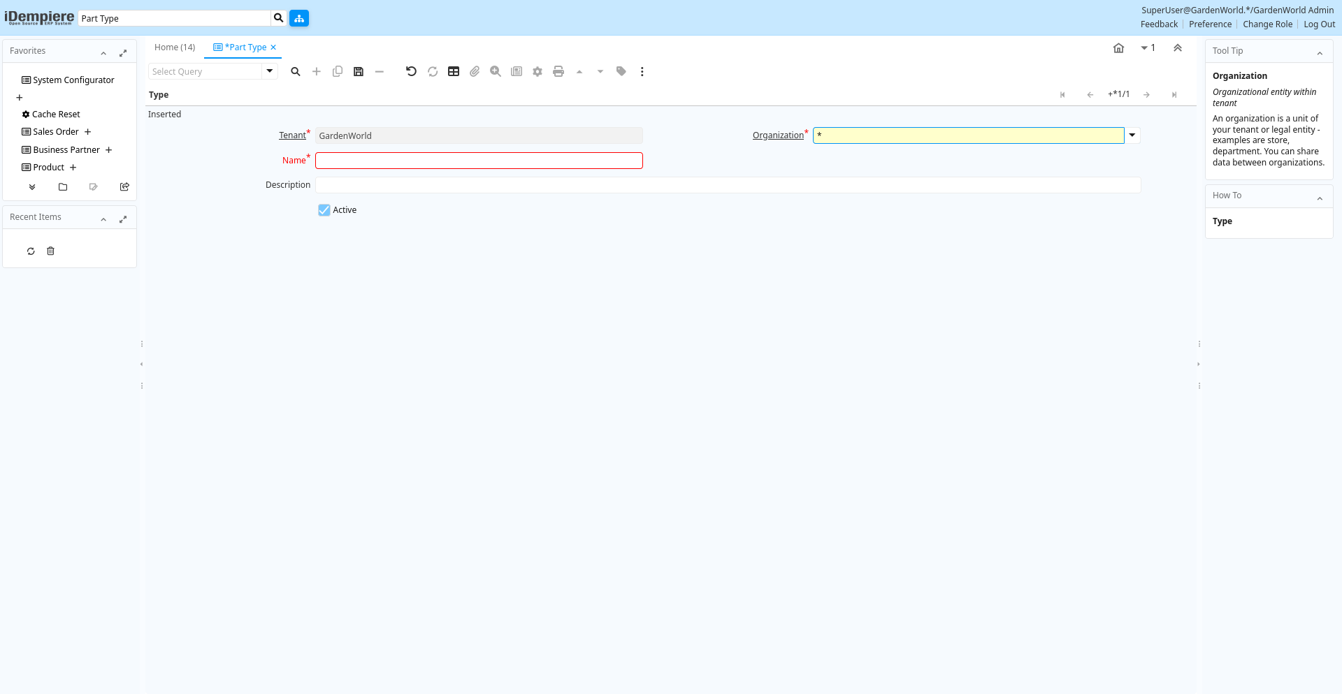| Tenant | Tenant for this installation. | A Tenant is a company or a legal entity. You cannot share data between Tenants. | m_parttype.AD_Client_ID numeric(10) Table Direct |