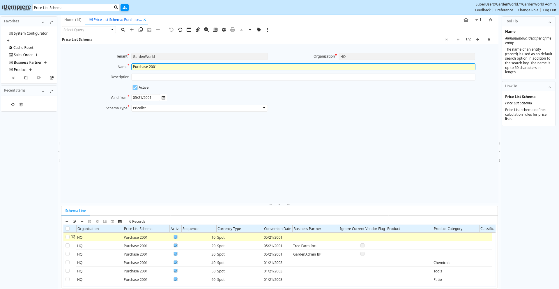 | Price List Schema | Schema to calculate price lists | m_discountschemaline.M_DiscountSchema_ID numeric(10) Table | |