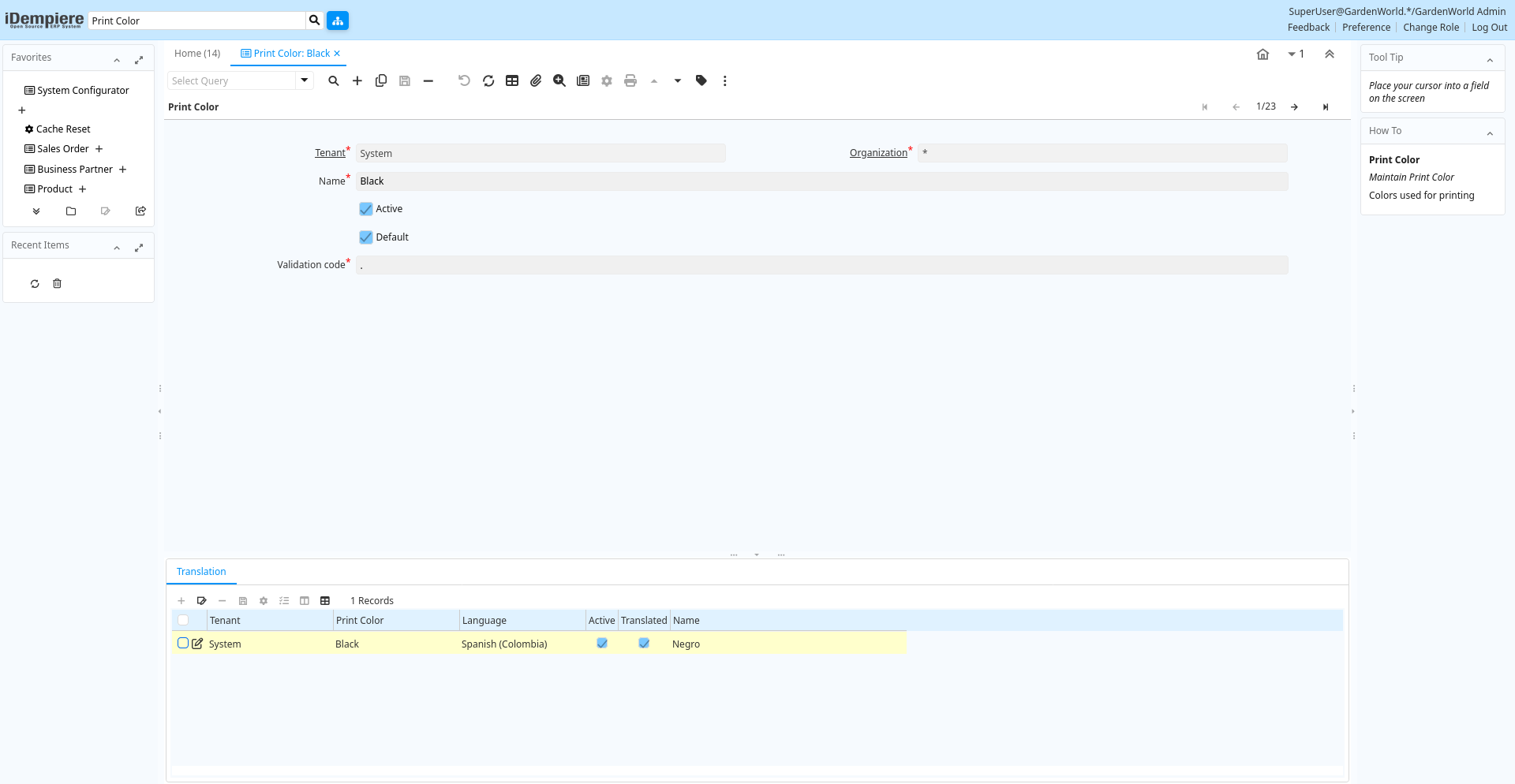 | Tenant | Tenant for this installation. | A Tenant is a company or a legal entity. You cannot share data between Tenants. | ad_printcolor_trl.AD_Client_ID numeric(10) Table Direct |