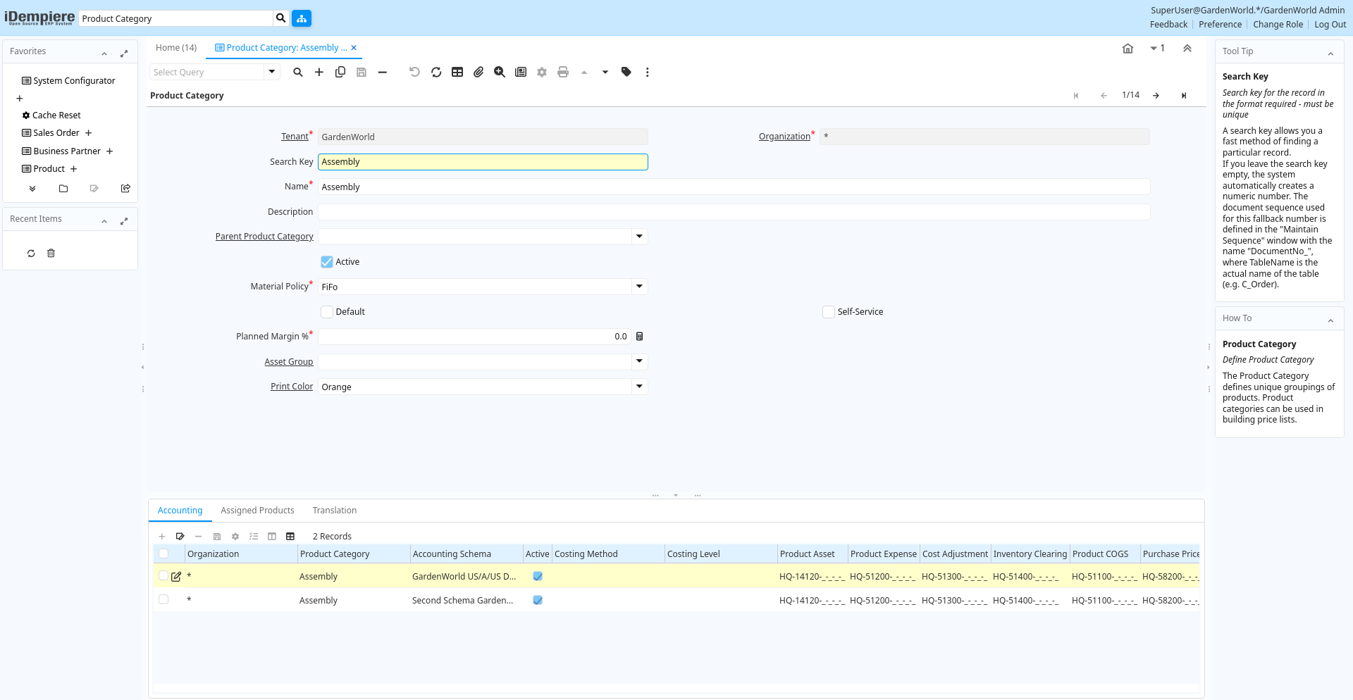 | Product Category | Category of a Product | Identifies the category which this product belongs to. Product categories are used for pricing and selection. | m_product_category_acct.M_Product_Category_ID numeric(10) Table Direct |