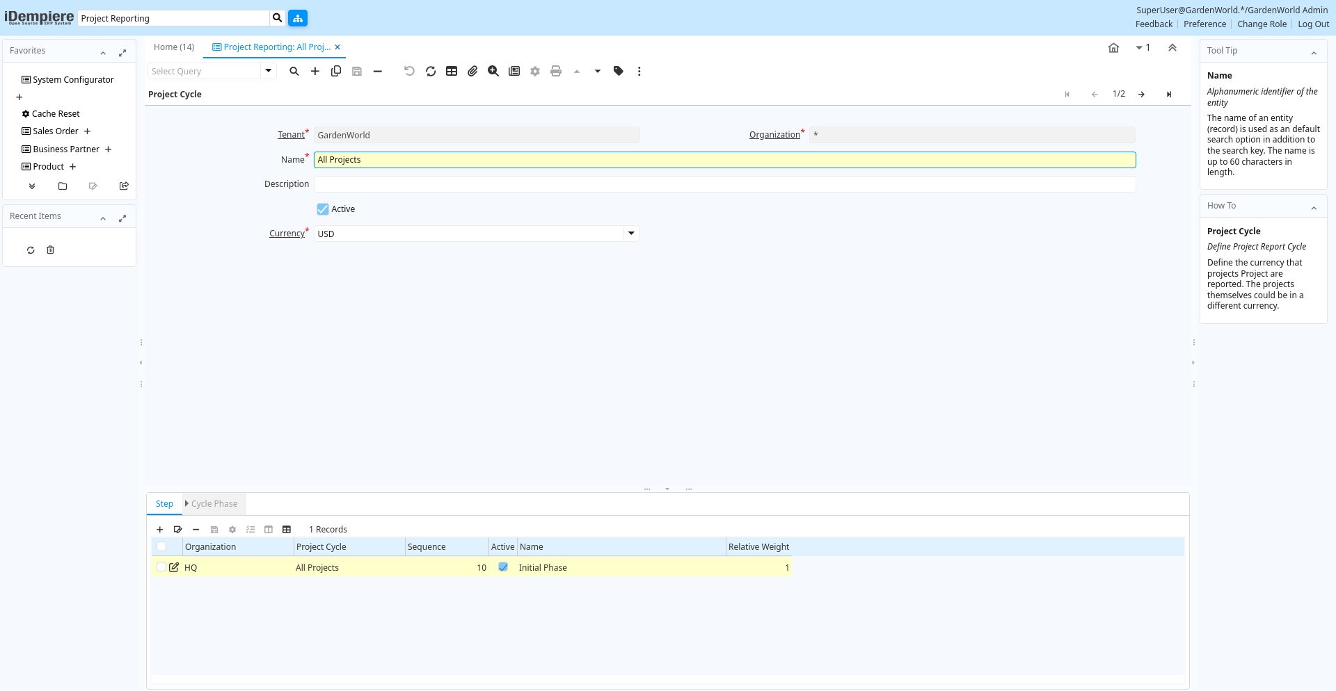 Help: The Cycle Step determines the logical sequence of events within your cycle. It is the common of similar Project Phases making different project types comparable.