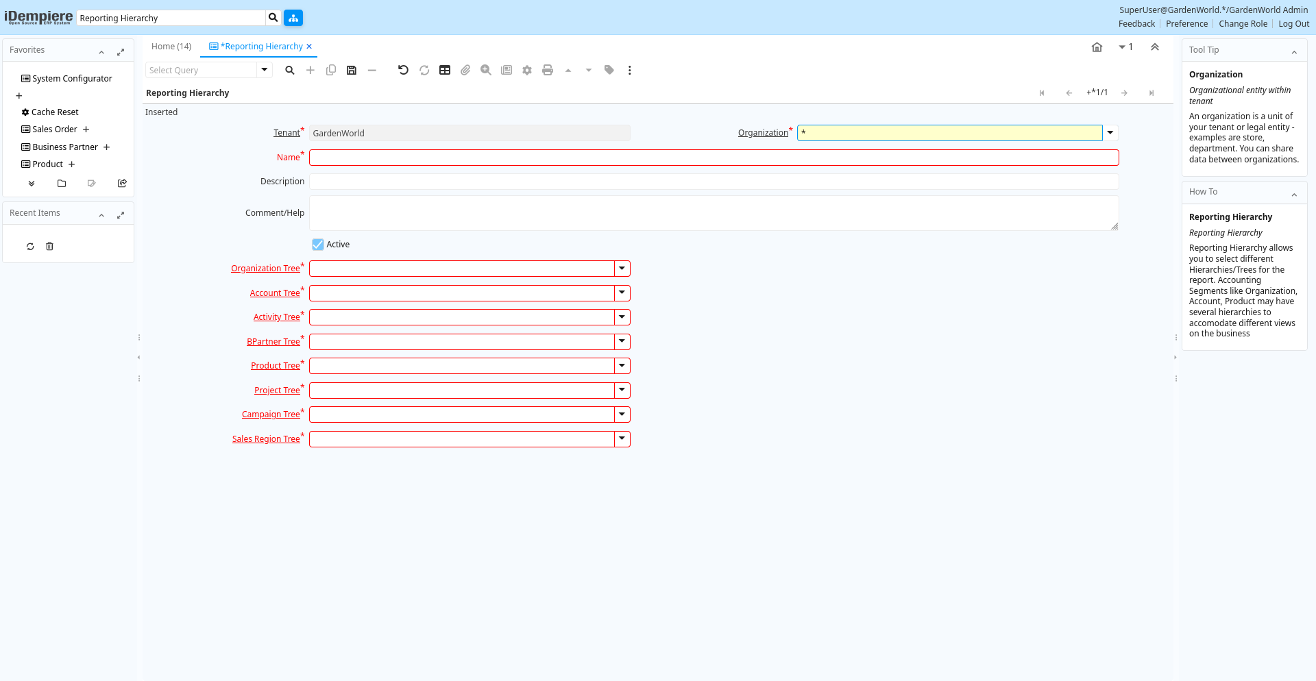 | Sales Region Tree | Trees are used for (financial) reporting | Trees are used for (finanial) reporting | pa_hierarchy.AD_Tree_SalesRegion_ID numeric(10) Table |