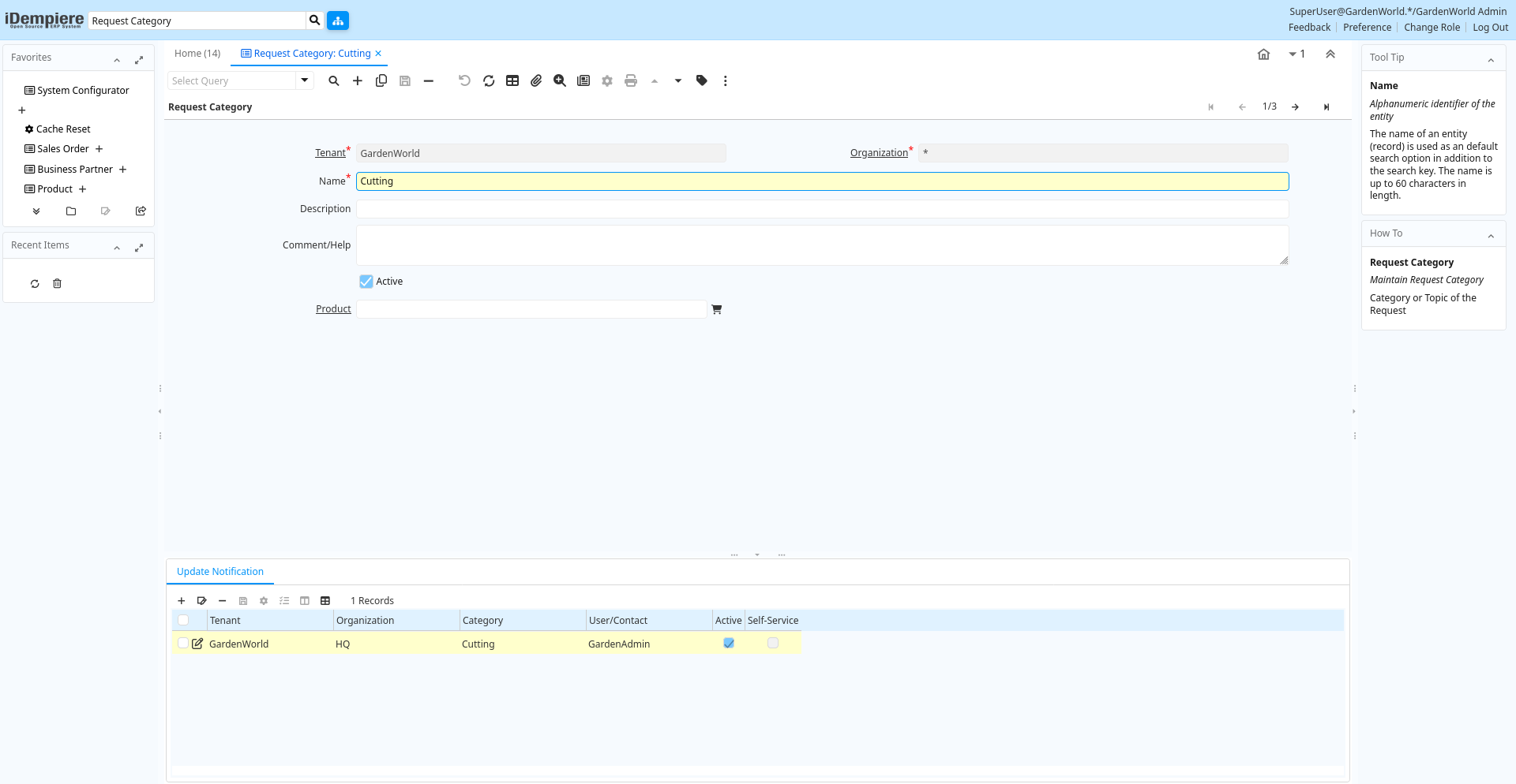 | Comment/Help | Comment or Hint | The Help field contains a hint, comment or help about the use of this item. | r_category.Help character varying(2000) Text |