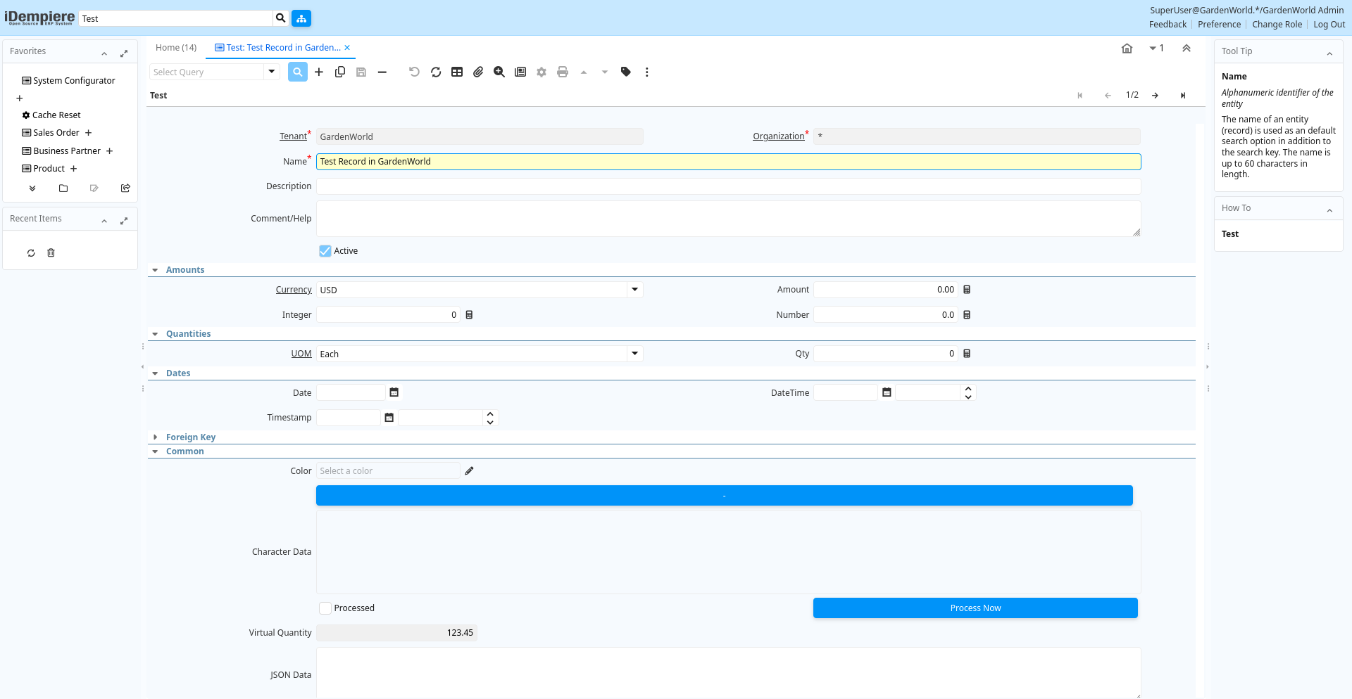 | Organization | Organizational entity within tenant | An organization is a unit of your tenant or legal entity - examples are store, department. You can share data between organizations. | test.AD_Org_ID numeric(10) Table Direct |
