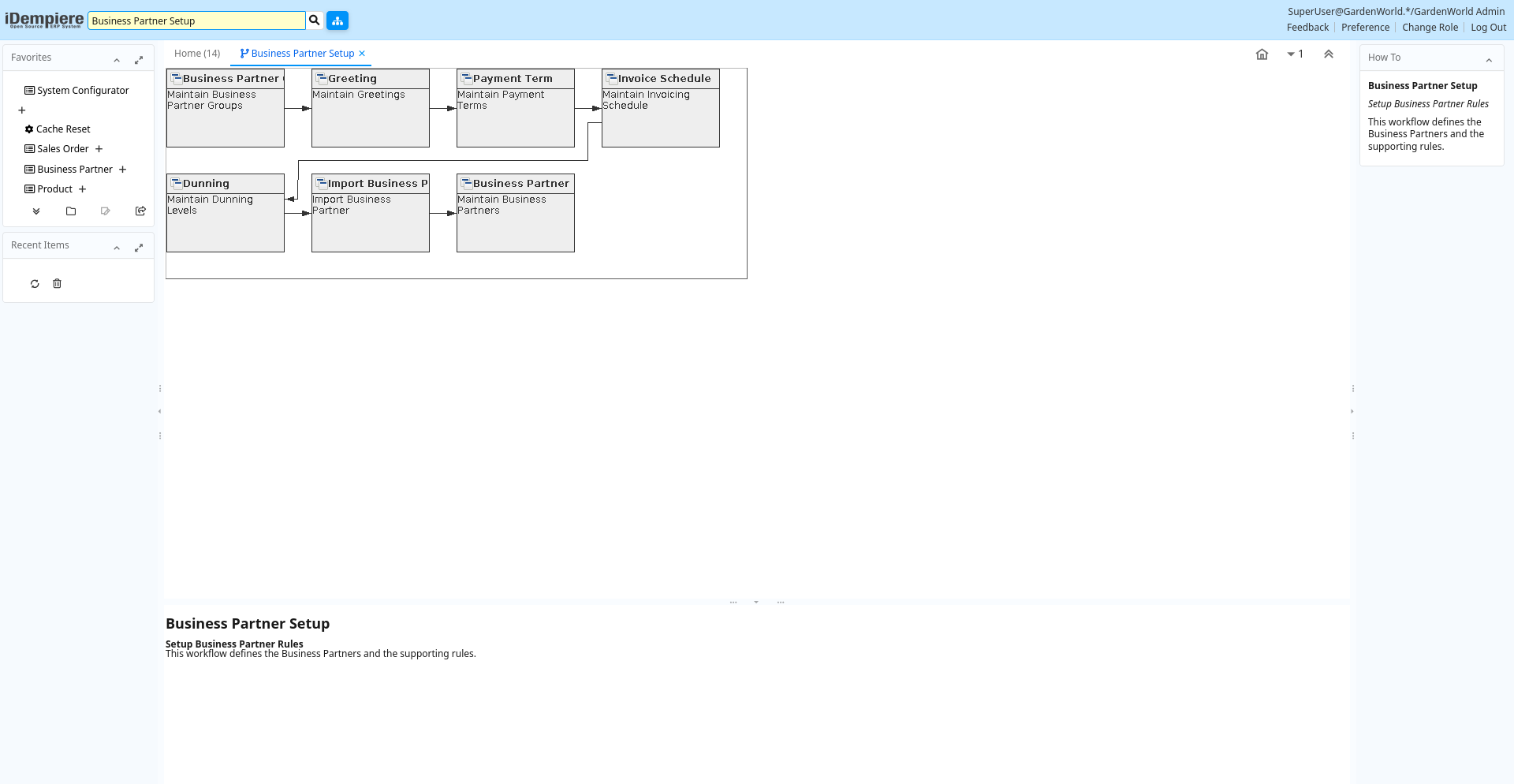 Help: This workflow defines the Business Partners and the supporting rules.